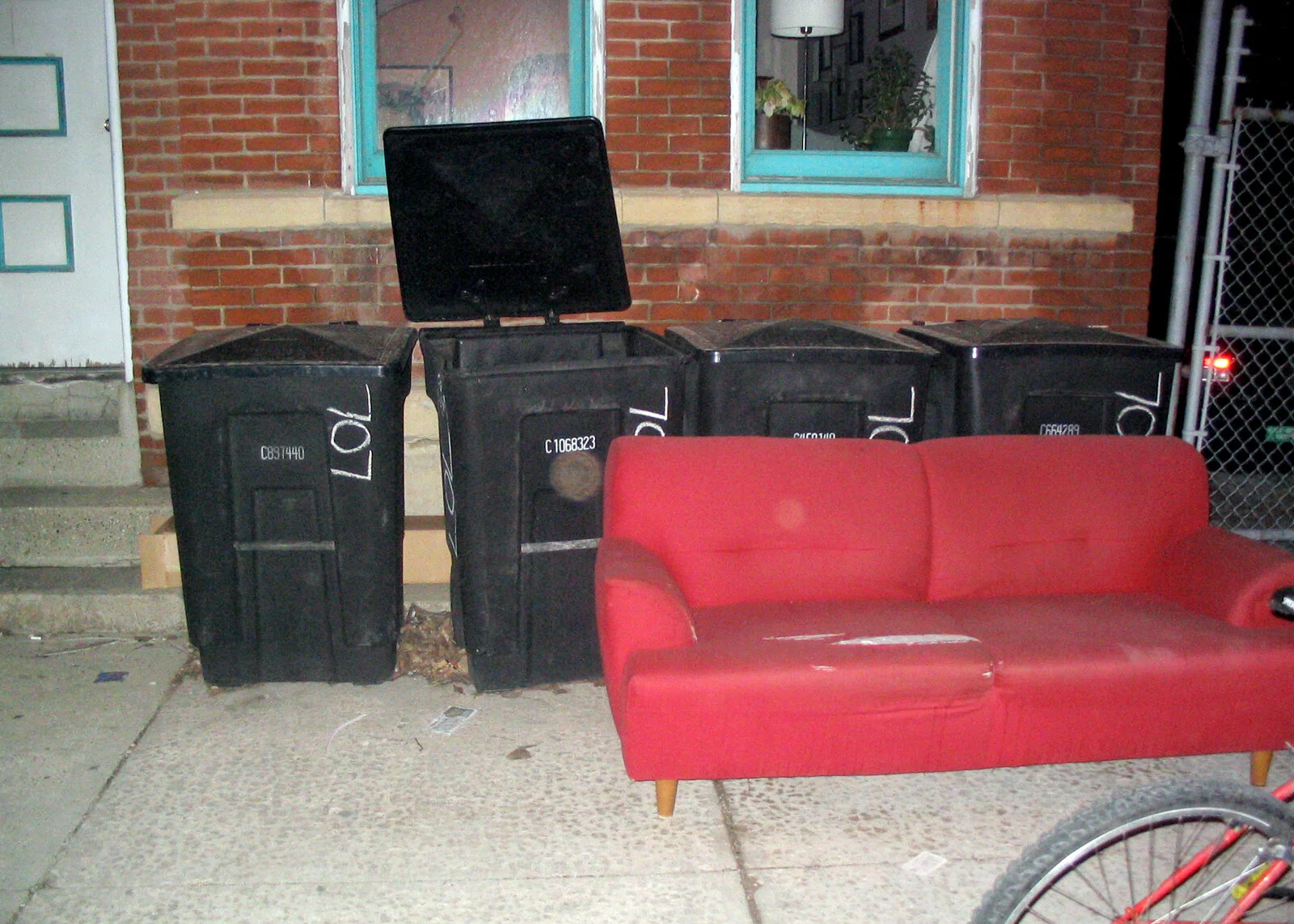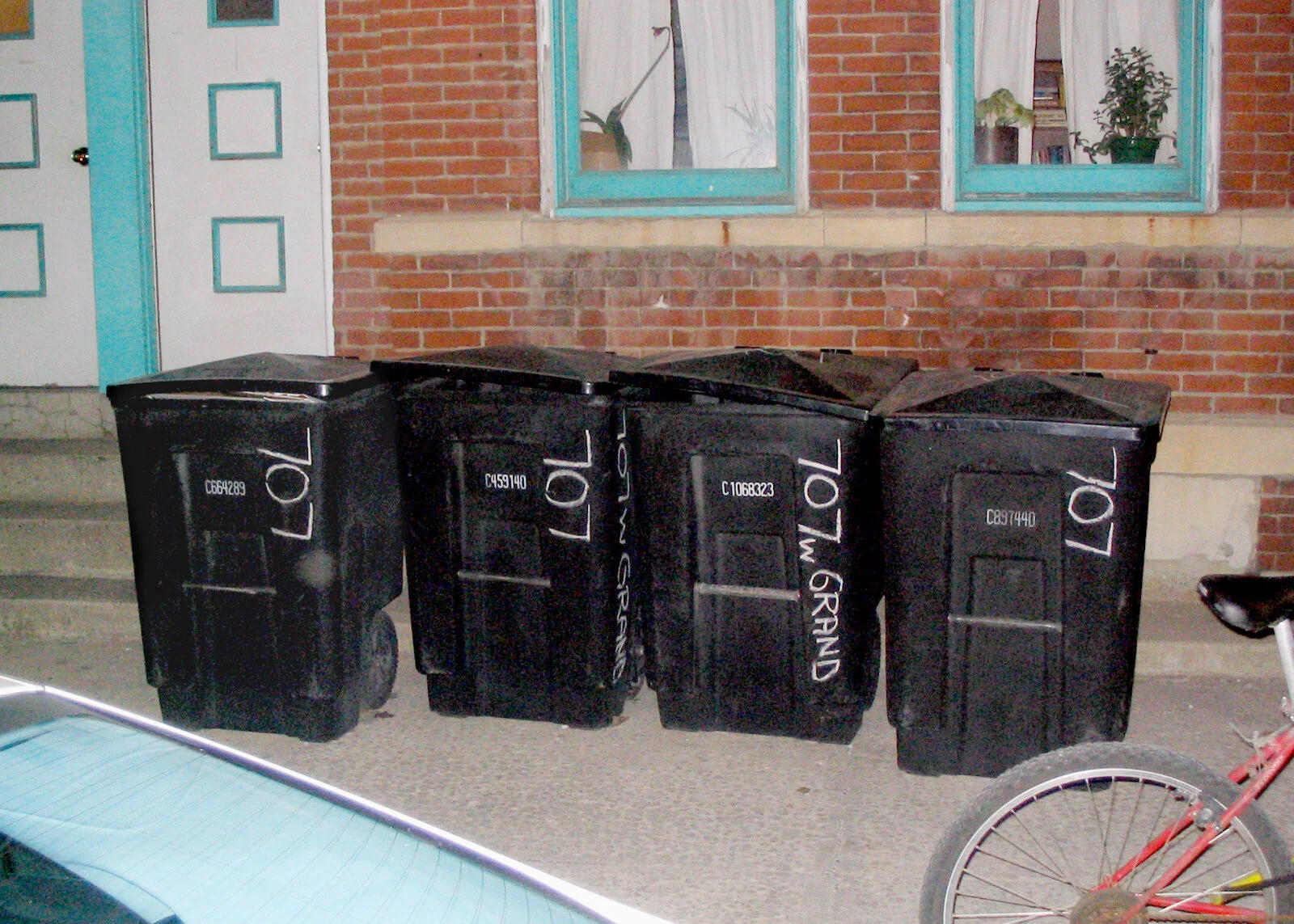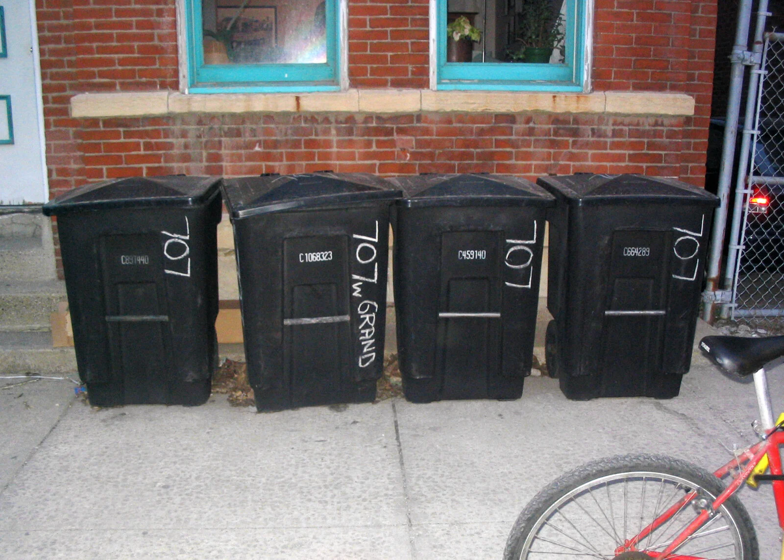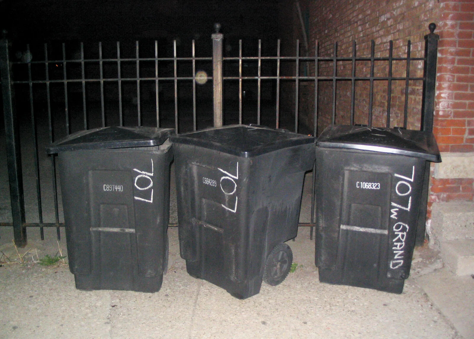 The two garbage cans are still around the corner from my apartment onHalsted Street.