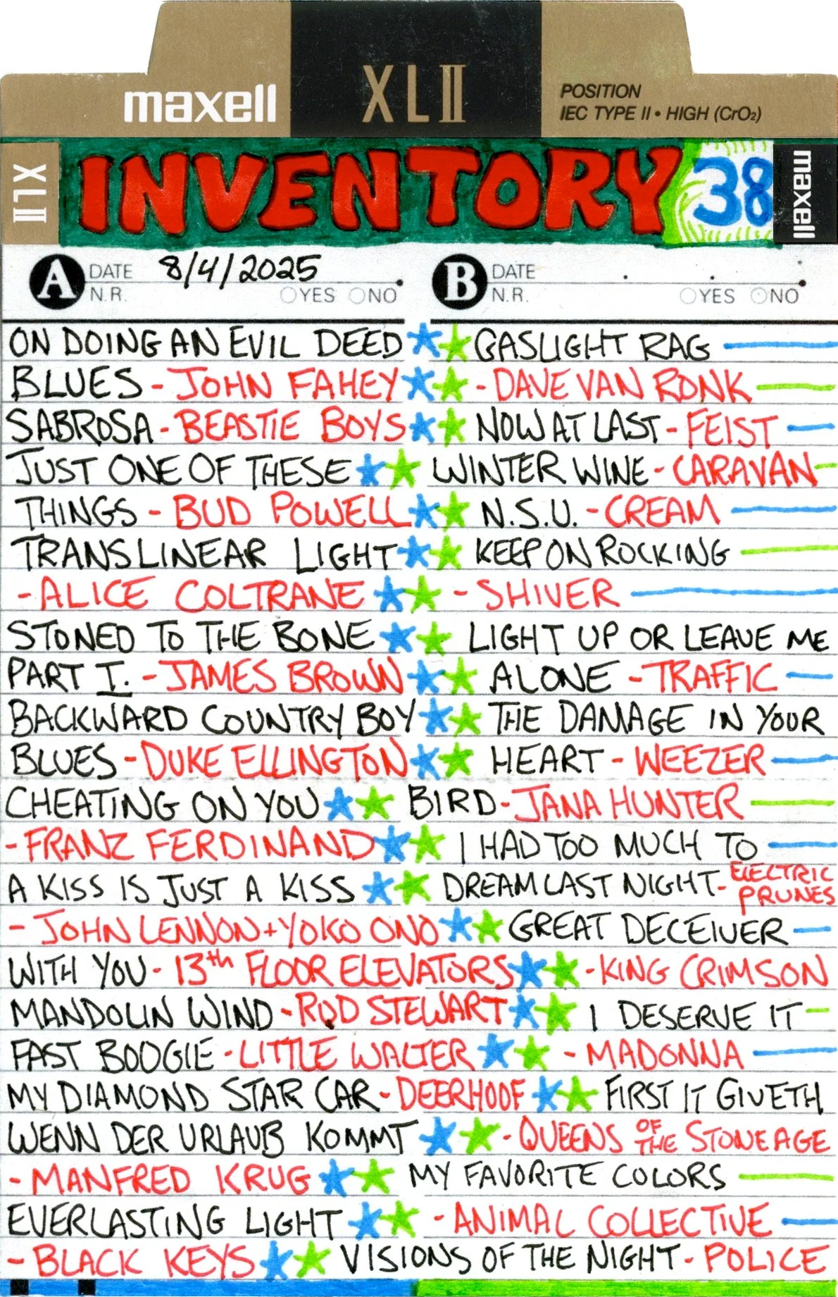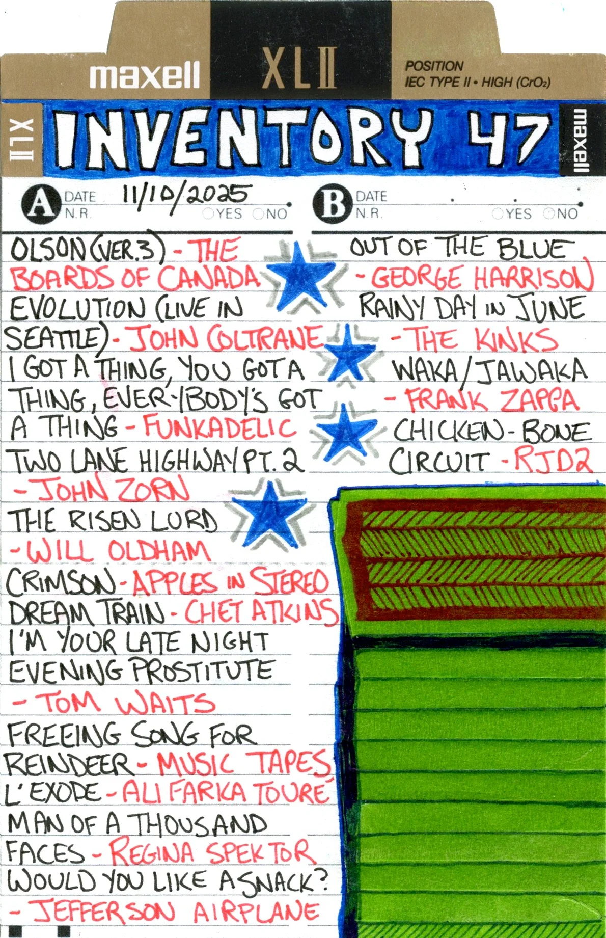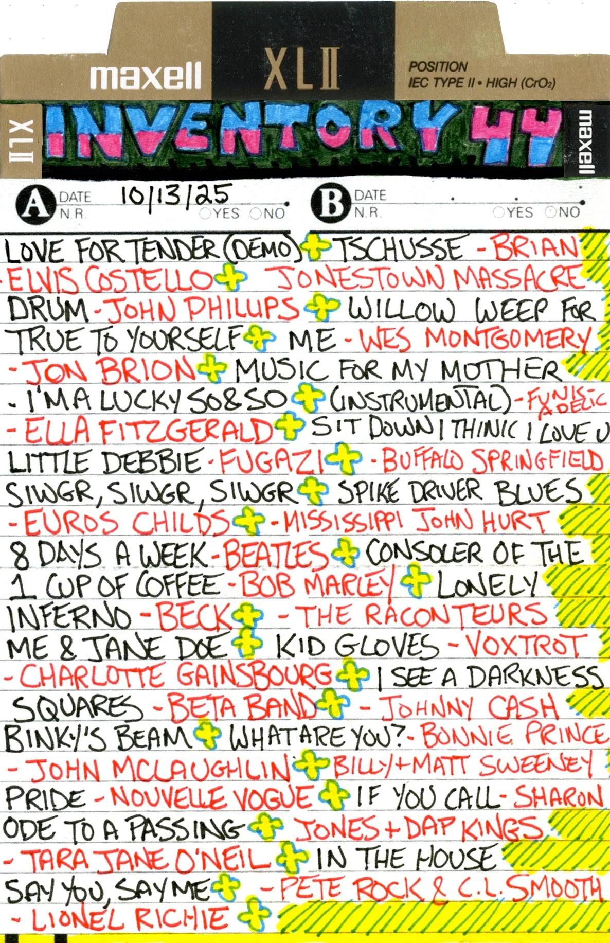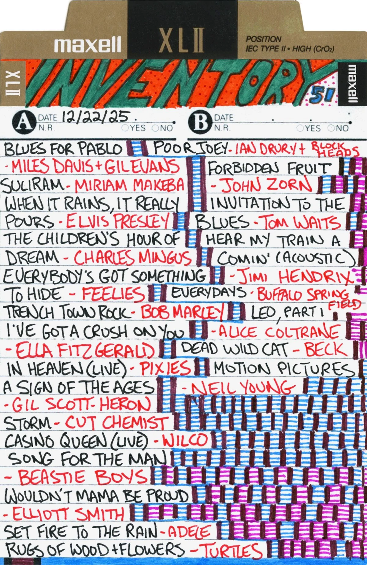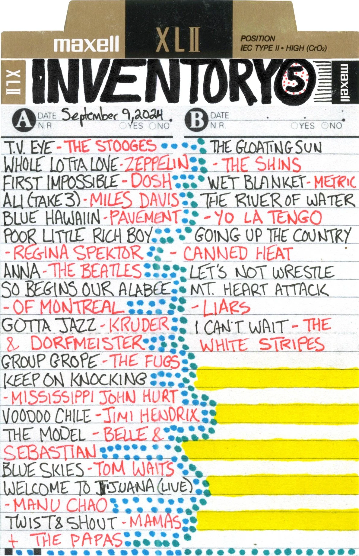 Inventory is a performance piece and weekly radio show on Brattleboro Community Radio (WVEW 107.7fm) every Monday from 2-4 pm ET. The project is presented in partnership with For Freedoms and features my 207GB collection of 26,894 mp3 tracks acquired over the years through purchasing, trading digital files, burning CDs, and downloading torrents. Each week I play the songs at random and delete each song after it is played until none remain (which may take the rest of my life). The project is a meditation on the act of listening, the passage of time, and consumerism; the more that is shared, the less I will own.