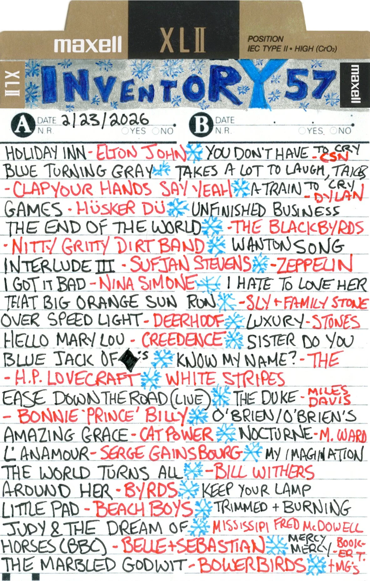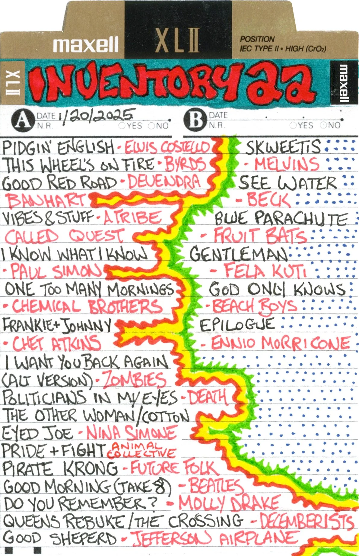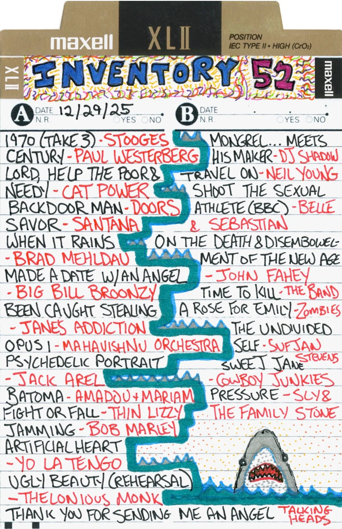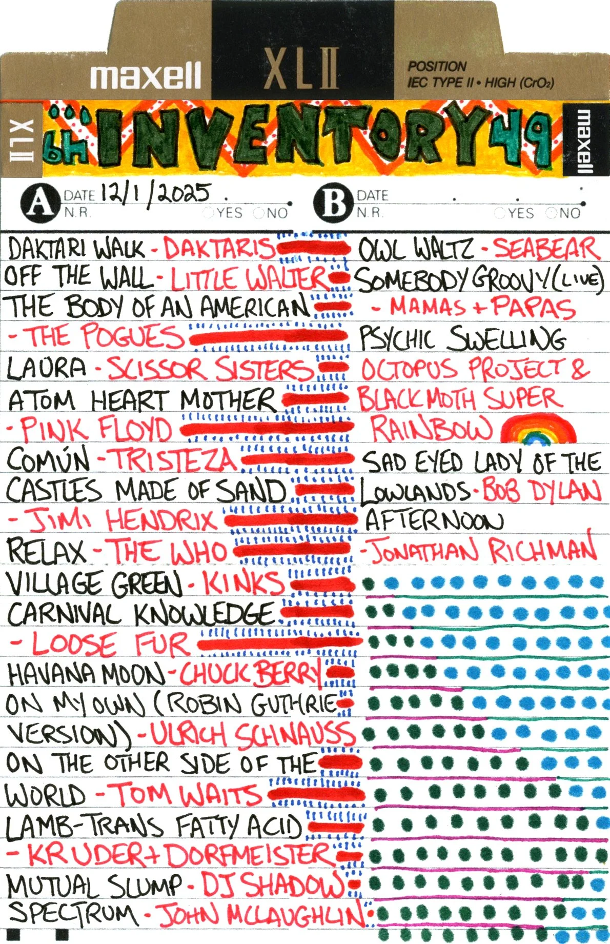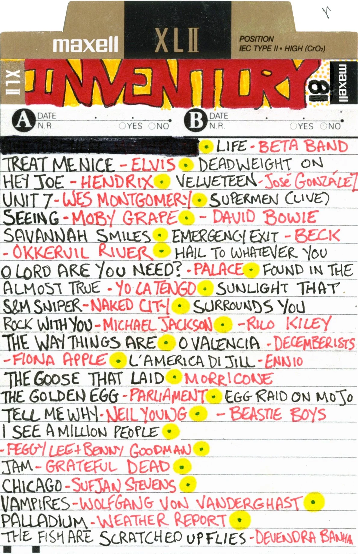 Inventory is a performance piece and weekly radio show on Brattleboro Community Radio (WVEW 107.7fm) every Monday from 2-4 pm ET. The project is presented in partnership with For Freedoms and features my 207GB collection of 26,894 mp3 tracks acquired over the years through purchasing, trading digital files, burning CDs, and downloading torrents. Each week I play the songs at random and delete each song after it is played until none remain (which may take the rest of my life). The project is a meditation on the act of listening, the passage of time, and consumerism; the more that is shared, the less I will own.