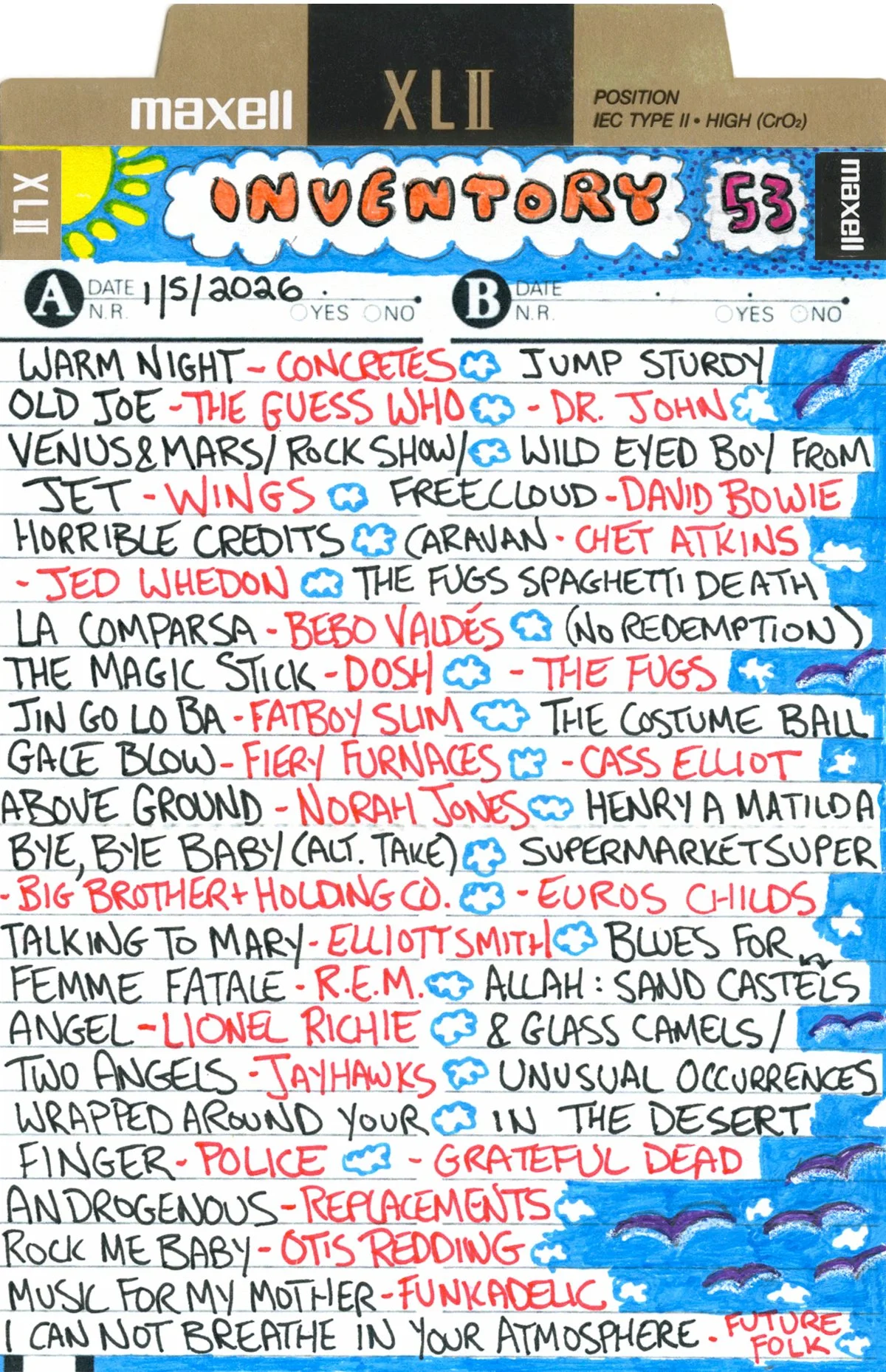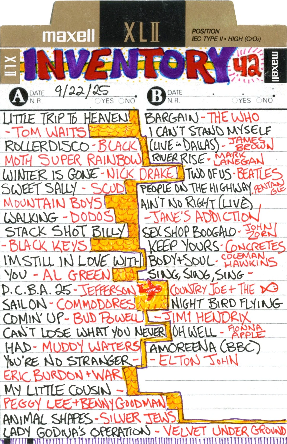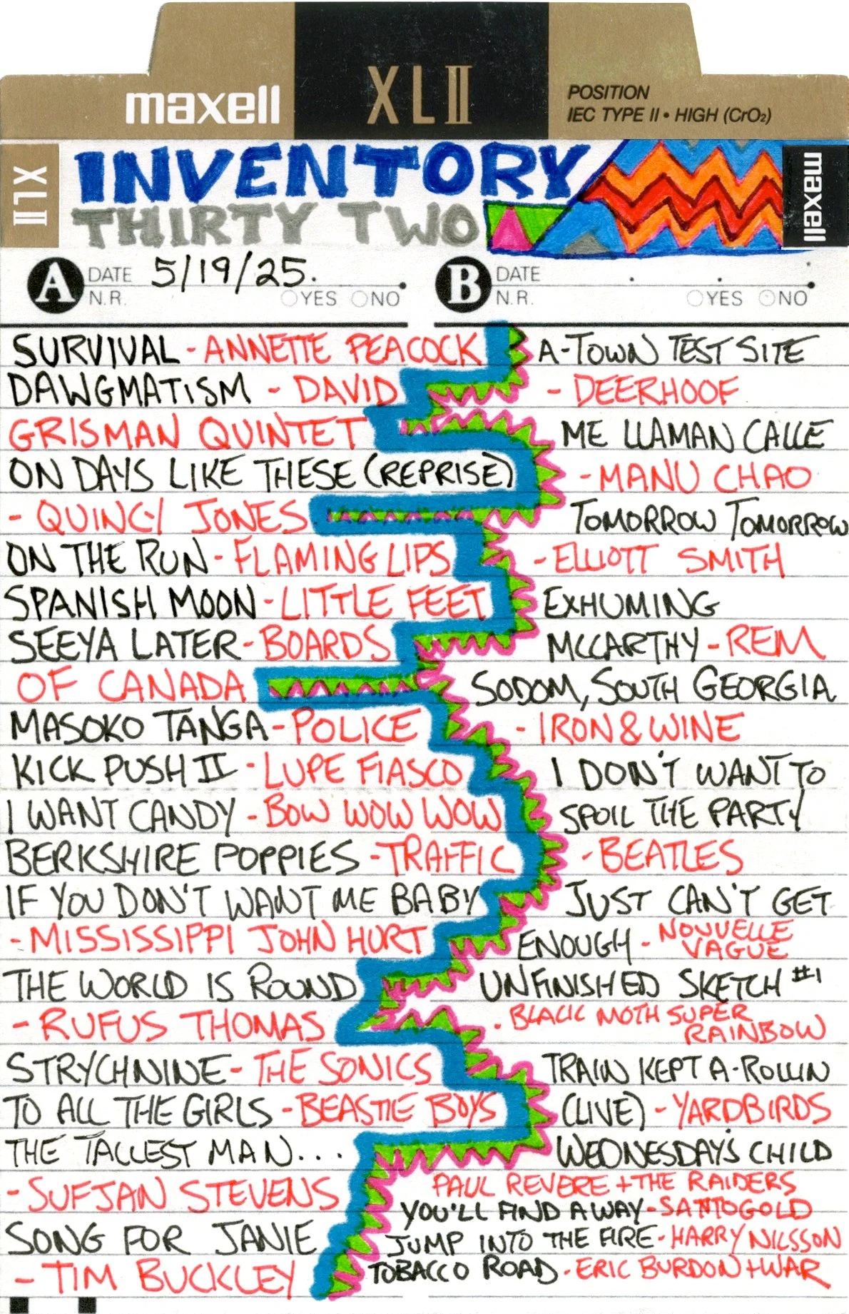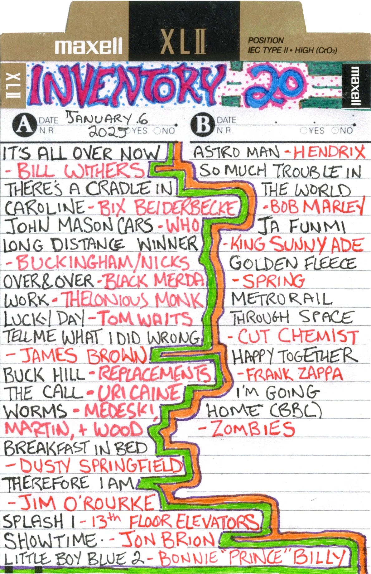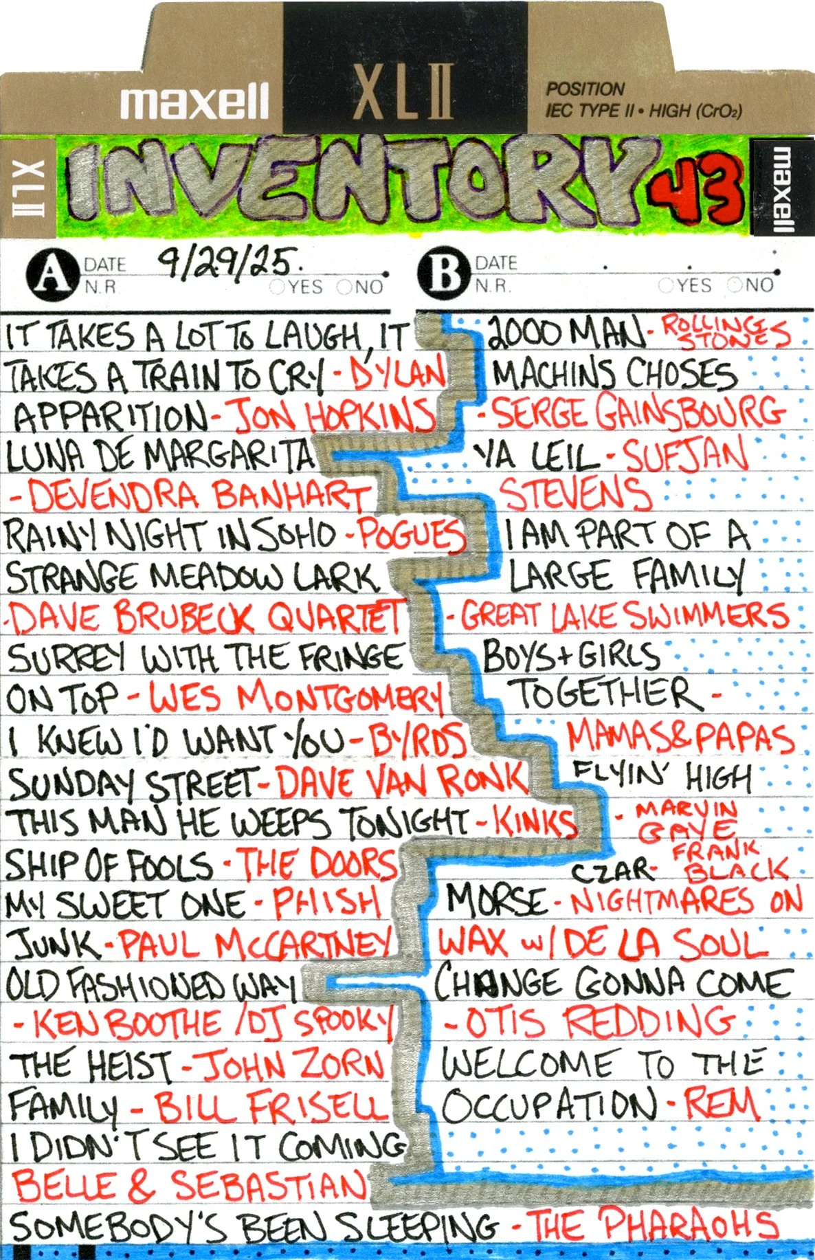Inventory is a performance piece and weekly radio show on Brattleboro Community Radio (WVEW 107.7fm) every Monday from 2-4 pm ET. The project is presented in partnership with For Freedoms and features my 207GB collection of 26,894 mp3 tracks acquired over the years through purchasing, trading digital files, burning CDs, and downloading torrents. Each week I play the songs at random and delete each song after it is played until none remain (which may take the rest of my life). The project is a meditation on the act of listening, the passage of time, and consumerism; the more that is shared, the less I will own.