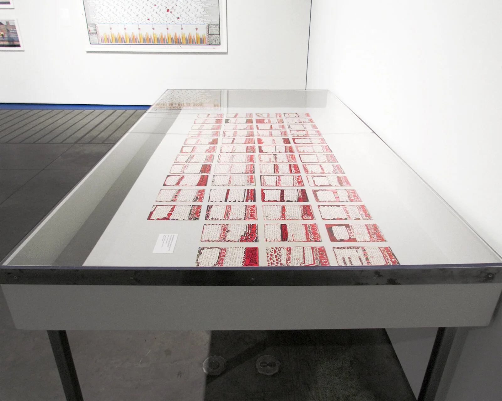 When The Sweet Spot was exhibited at the Scottsdale Museum of Contemporary Art, I recreated the platform to scale on the floor of the museum using duct tape and vinyl lettering. The seven photographs and large diagram were hung above the floor installation and were accompanied by a glass viewing case displaying the 50 daily notes. The Sweet Spot was exhibited again in 2015 at the Bennington Museum as part of my solo exhibition, In The World, and again in 2018 as part of the exhibition Resident X at Artspace in New Haven.